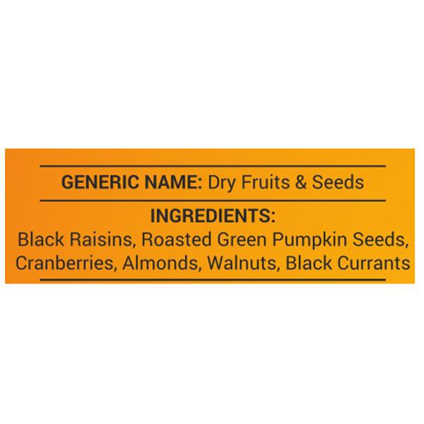 Ingredients – Black Raisins, Green Pumpkin Seeds, Cranberries, Almonds, Walnuts, Black Currants