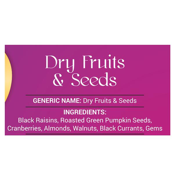 Ingredients – BlackRaisin,RoastedGreen Pumpkin Seeds,Cranberries,Almonds,Walnuts,BlackCurrants,Gems