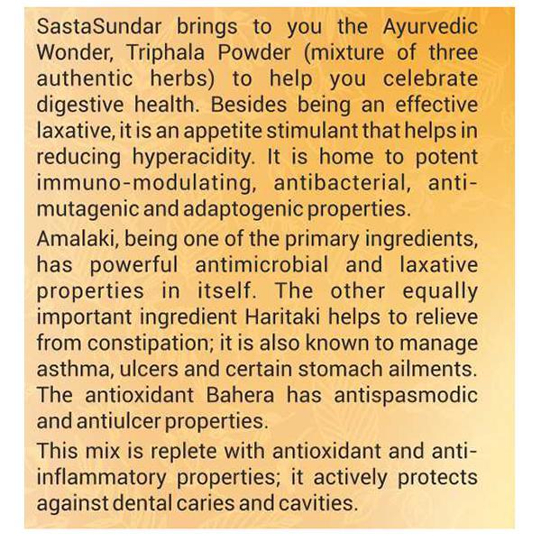 SastaSundar brings to you the Ayurveda Wonder, Triphala Powder (mixture of three authentic herbs) to help you celebrate digestive health.