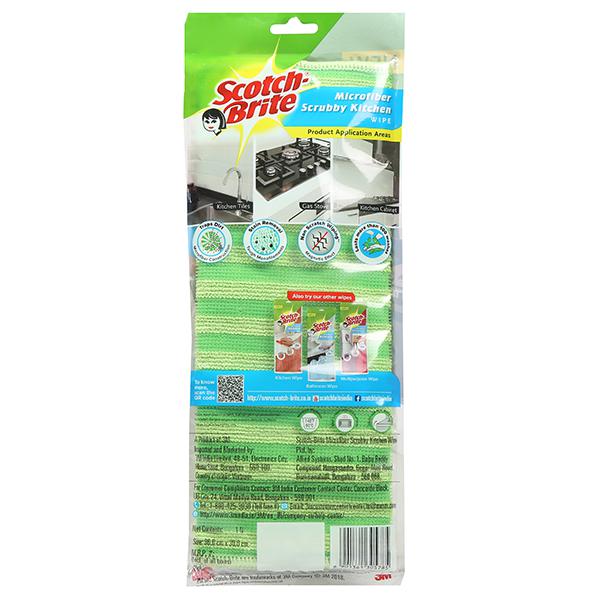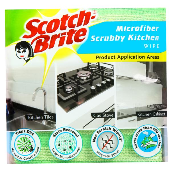 The Scotch-Brite Scrubby Kitchen Wipe can be used to scrub and wipe your kitchen counter . The scrubby surface removes stains without scratching the surface and makes cleaning effortless, microfiber construction lifts and trap dust and absorbs water better than normal cloth.