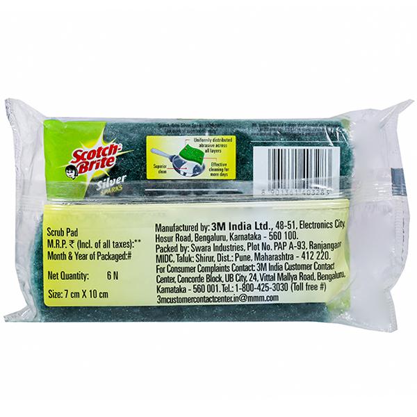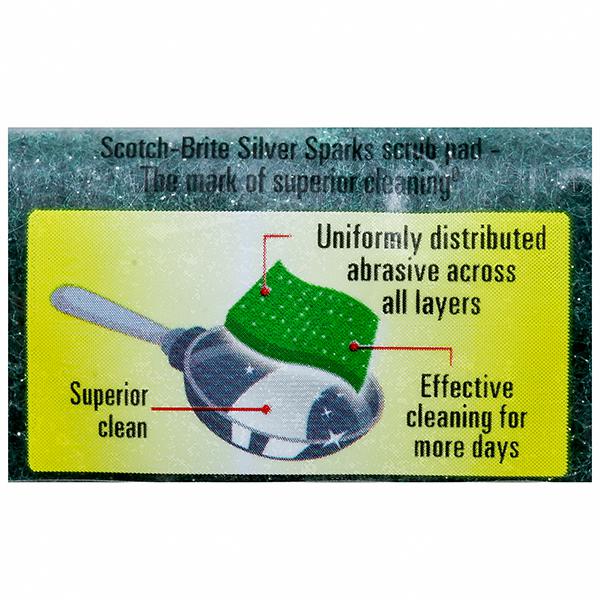 Scotch Brite Silver Sparks Scrub Pad is made with high-quality material. It is a multipurpose scrub that can be used to clean utilities as well as kitchen platforms. It is a versatile kitchen sponge that efficiently cleans your utilities and kitchen leaving it spotless. This scrub pad cleans stubborn stains easily without any hassle. It can also be used for heavy-duty scrubbing. The material absorbs soap and water.