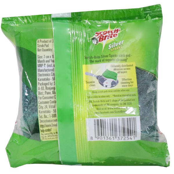 Scotch Brite Silver Sparks Scrub Pad 7 cm x 10 cm(Buy 3 Get 1 Free) Pack Of 4