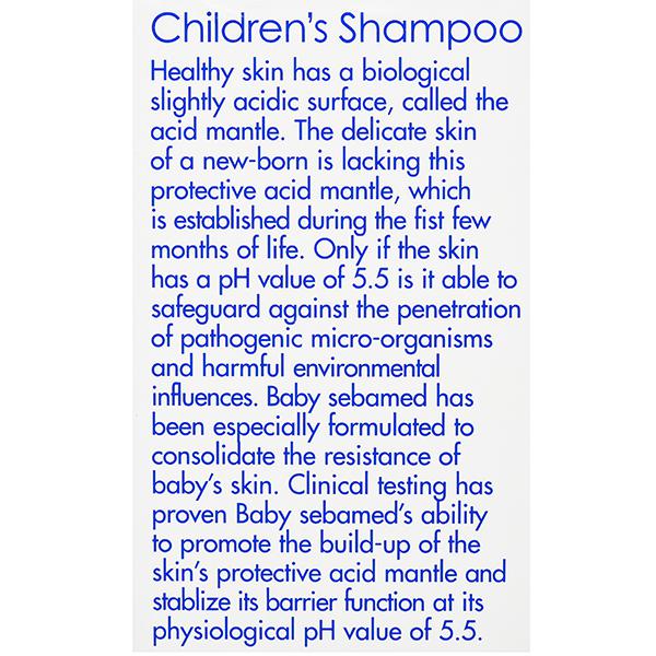 The 100% soap and alkali free, mild emollient formula is the ideal care for the delicate scalp and fine hair of babies and small children. Baby sebamed Children's Shampoo with its pH value of 5.5 promotes the development of the scalp's physiological acid mantle. A healthy scalp is important for the growth of a healthy head of hair. The gentle cleansing action of the mild surfactant complex minimizes the risk of dryness due to its excellent skin tolerance. The extract of camomile recutita with its anti-inflammatory properties alleviates irritation and soothes the skin. Baby sebamed Children's Shampoo makes the hair fragrant, silky and easy to comb.