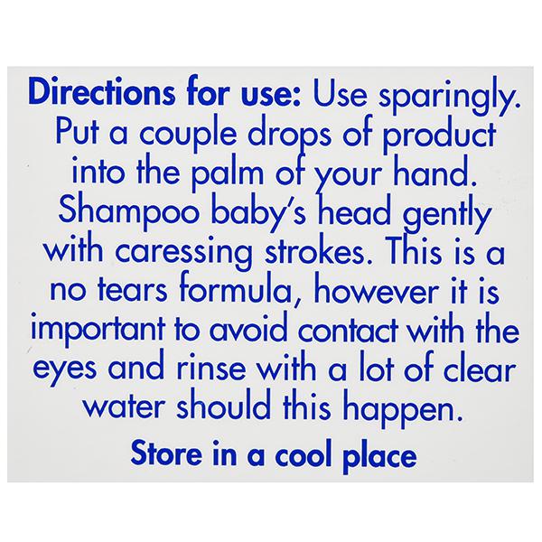 Use sparingly. Put a couple drops of product into the palm of your hand. Shampoo baby's head gently with caressing strokes. This is a no tears formula, however it is important to avoid contact with the eyes and rinse with a lot of clear water should this happen.
