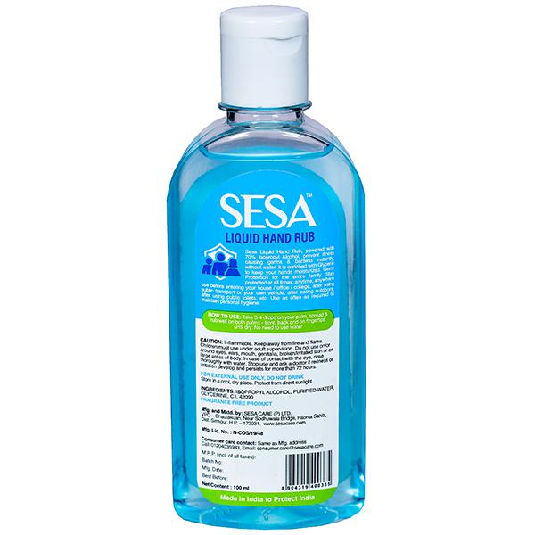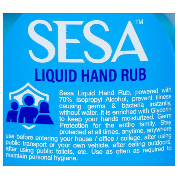 Keep your hands and surfaces clean and germ free on the go with Sesa Liquid Hand Rub which kills 99.9% germs and protects you from any possible diseases which spreads through your hands.