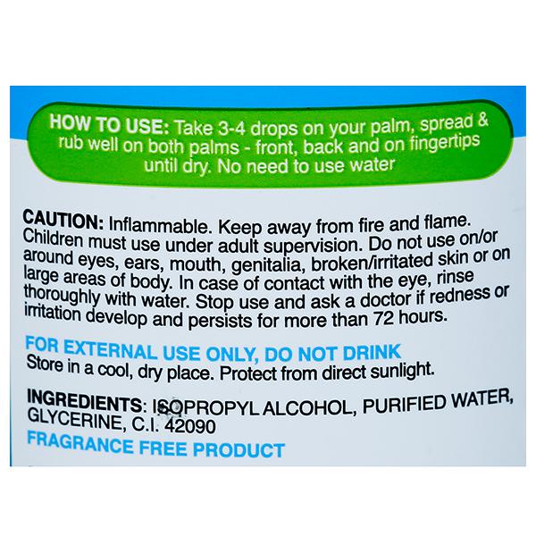 Pour some hand sanitizer on to your palm or on the surfaces required and rub and wipe briskly till dry.