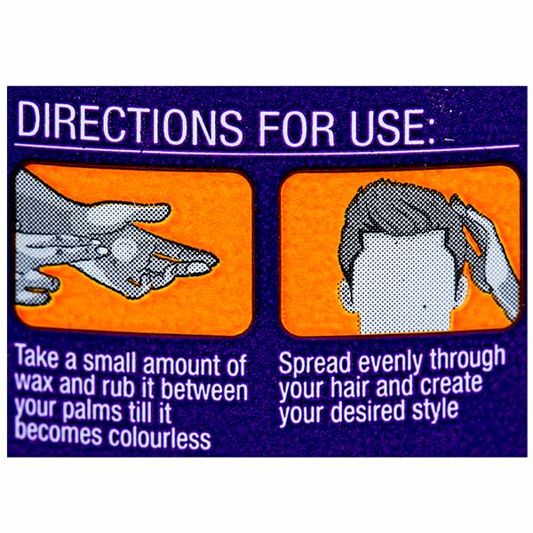 How to Use - Step 1: Move and lift the hair in an upward direction away from the forehead. Step 2: Take a coin sized amount of wax and rub it evenly between your palms. Step 3: Run your fingers through your hair to get the desired style.