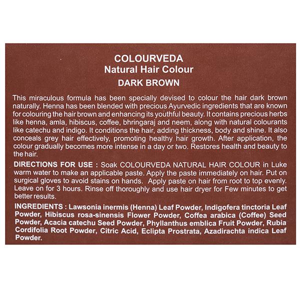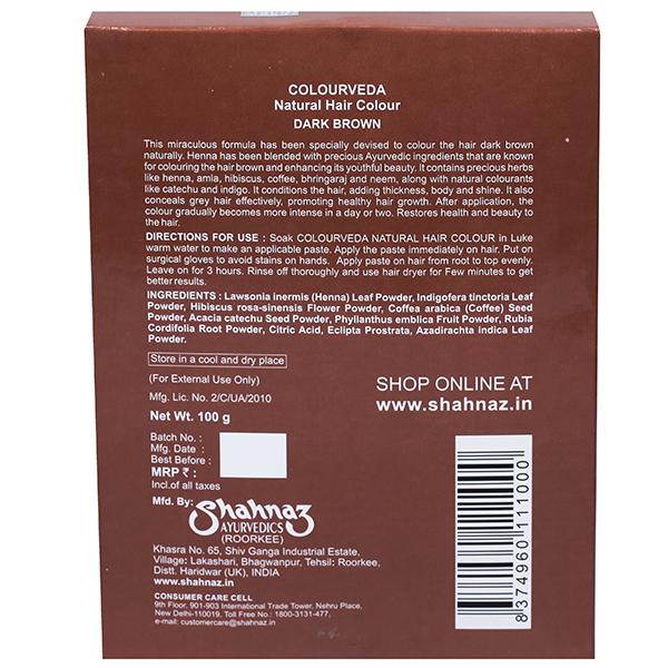 Shahnaz Husain Colourveda Natural Hair Colour Dark Brown is a completely natural herbal hair dye which imparts colour to the hair. It is an Ayurvedic hair colour containing traditional plant ingredients that impart natural colour to the hair.
