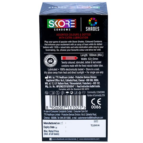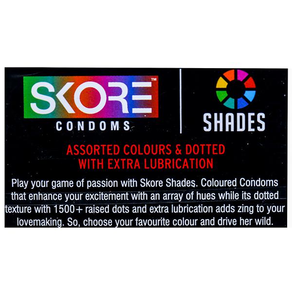 Fire up your nights and take your game a notch higher with Skore Condoms. The pack contains twenty lubricated, coloured, dotted & teat ended condoms.