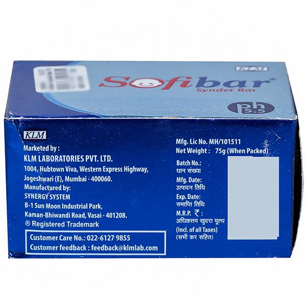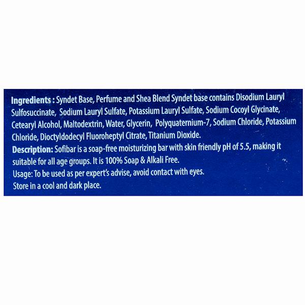 Sofibar Syndet Bar is a soap-free moisturizing bar with skin friendly pH of 5.5, making it suitable for all age groups. It is 100% soap & alkali free.