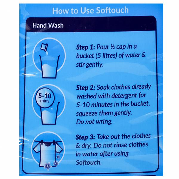 About This Item: Softouch helps to retain the newness of your clothes longer. It prevents them from fading while retaining their shine & softness. Softouch also neutralizes the damage done by harsh detergents and hard water, filling your life with fragrance at the same time. Softouch has active conditioning agents which keeps clothes soft, shiny and looking as good as new even when washed in hard water. It also keeps your clothes germ free and hygienic, and this helps to keep you healthy.