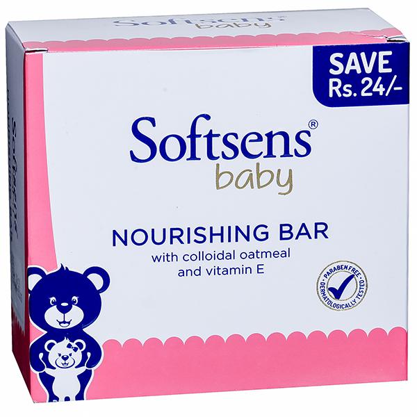 Softsens Baby Nourishing Bar is a deeply nourishing baby soap for visibly healthier and supple skin. Formulated with the goodness of rich emollients like natural almond oil and pure honey, it gently cleanses and nourishes your baby's delicate skin and locks in moisture, leaving behind soft, smooth, hydrated skin and a happy, delighted baby!