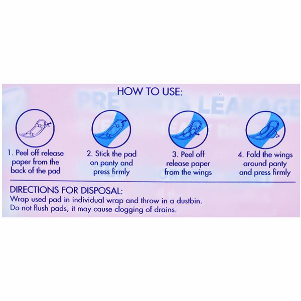 Unwrap the napkin. Remove the paper on the back side of the pad and place it on your panty. Remove the release paper from wings. Wrap the wings around both sides of the panty and press firmly. Before disposing of the pad in a dustbin, wrap it in a paper. Do not dispose of the pad in a toilet or flush it as it may clog.