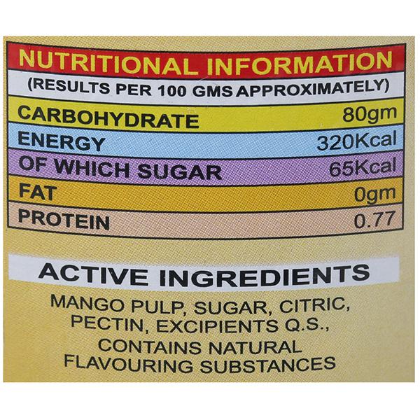 Ingredients:- Mango Pulp, Sugar.