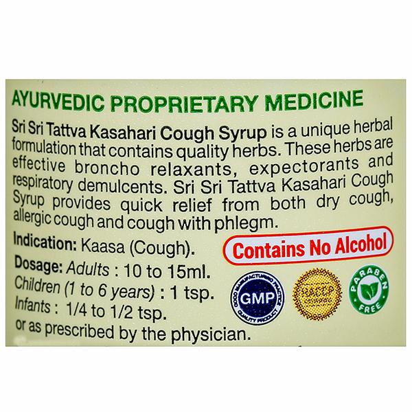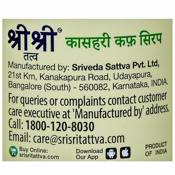 Sri Sri Tattva Kasahari Cough Syrup is a unique herbal formulation with quality herbs that are effective broncho relaxants, expectorants and respiratory demulcents. It provides quick relief from both dry cough, allergic cough and cough with phlegm.