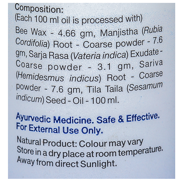 Ingredients - Madhucchista (Bee Wax), Manjishtha, Sarjarasa, Sariva, Tila Taila. Natural Product: Colour may vary.
