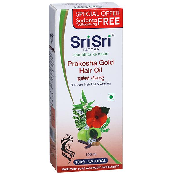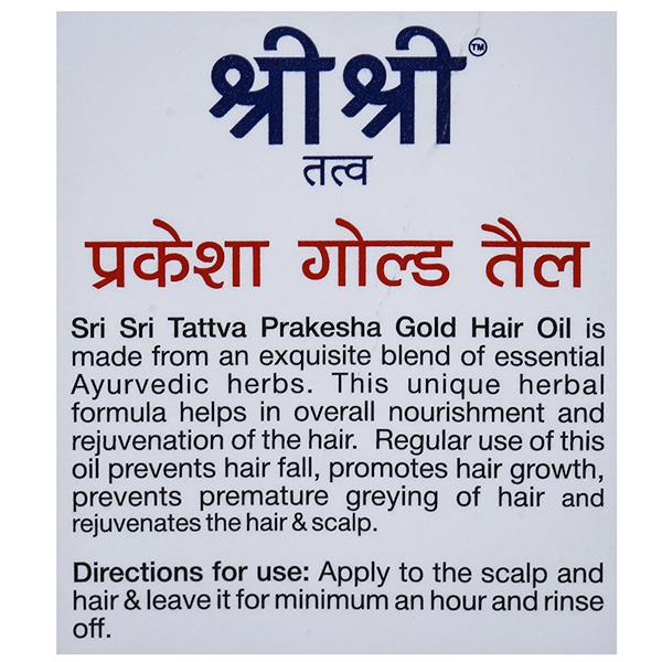Sri Sri Tattva Prakesha Gold hair oil is made from an exquisite blend of essential Ayurvedic herbs. This unique herbal formula helps in the overall nourishment & rejuvenation of the hair. Regular use of this oil prevents hair fall, promotes hair growth, prevents premature greying of hair & rejuvenates the hair & scalp.