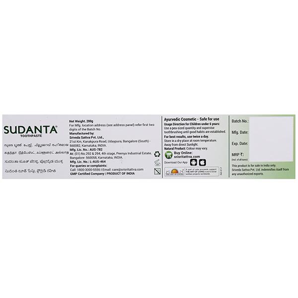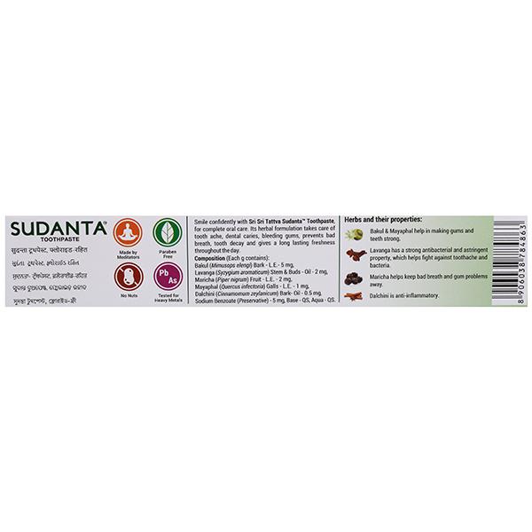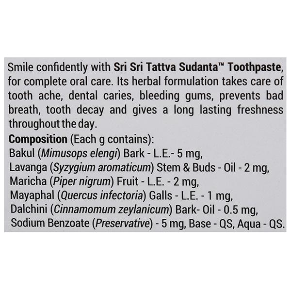 Product Information - Sri Sri Tattva Sudanta Toothpaste, for complete oral care. Its herbal formulation takes care of tooth ache, dental caries, bleeding gums, prevents bad breath, tooth decay and gives a long lasting freshness throughout the day. Improve oral health with Sri Sri Tattva Sudanta Toothpaste. From offering dental protection to dental beauty, Sri Sri Tattva Sudanta Toothpaste works to guard and beautify your teeth. Packed with the goodness of nature.