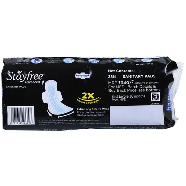Product Information:-Stayfree Advanced gives all round protection so that you get maximum protection no matter, which way you twist or turn all night through light to moderate period flow.