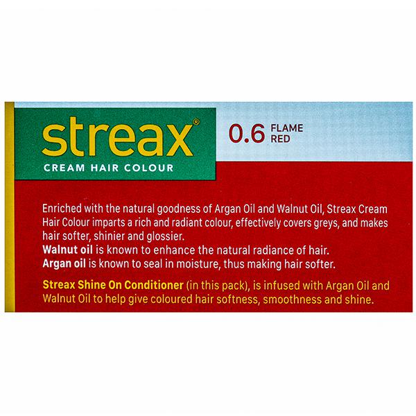 Product Information - Streax carries a sharp focus while developing products under its portfolio, so as to provide world class products with unique characteristics & high quality. On its journey to provide best in class hair colour products, they manufactured a revolutionary hair color with walnut and argan oil that smoothens up your hair and add a shiny and suave look The easy to use, cream hair colour gives you bold, shiny and glossy look. Streax Hair Colour is enriched with Argan oil & Walnut oil and comes along with a special Ultra shine Conditioner that conditions your hair and adds shine & smoothness.