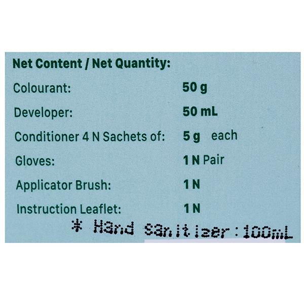 Number of Contents in a Sales Package - 1N Colourant 50 g, 1N Developer 50 ml, 4N Conditioner Sachets 5 g each, 1 Pair Gloves, 1N Applicator Brush, 1N Instruction Leaflet & Free Florozone Plus Hand Sanitizer 100 ml