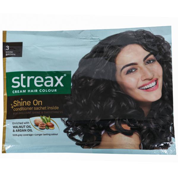 Get salon-like hair color with the Streax Hair Colour - 3 Dark Brown. It is infused with walnut and argan oil to offer healthy and long-lasting color. This nourishing hair color also provides 100% grey coverage, so you feel confident in flaunting your hair every day. This Streax hair color imparts beautiful shine and smoothness to the hair, making it easily manageable.