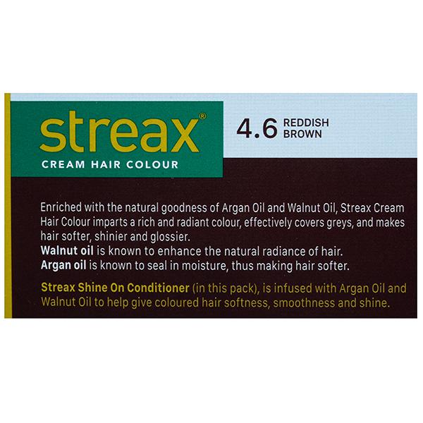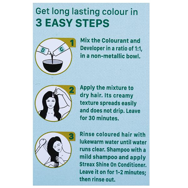 Product Information - Streax carries a sharp focus while developing products under its portfolio, so as to provide world class products with unique characteristics & high quality. On its journey to provide best in class hair colour products, they manufactured a revolutionary hair color with walnut and argan oil that smoothens up your hair and add a shiny and suave look The easy to use, cream hair colour gives you bold, shiny and glossy look. Streax Hair Colour is enriched with Argan oil & Walnut oil and comes along with a special Ultra shine Conditioner that conditions your hair and adds shine & smoothness.