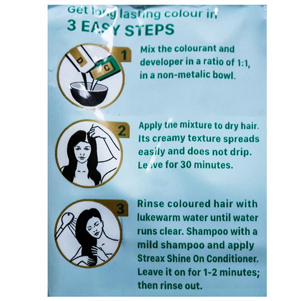SHINY HAIR COLOUR – Streax Cream Hair Colour helps in adding a shiny touch to your hair. The hair colour spreads evenly throughout your hair which provides gorgeous shine to your hair.