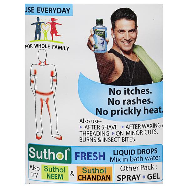 Product Information - Suthol Antiseptic Skin Liquid is a smarter way to fight against Prickly Heat, Itches and Skin Rashes. Being liquid Suthol penetrates deep within skin carrying its healing and protective ingredients to provide you with the best protection and relief against skin problems.