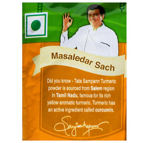 Tata Sampann Turmeric Powder Powder adds deep golden hue to any food preparation. It brings warm flavors to any curry, pickle, soups and salads. It compliments the recipes like rice, pulao's, dal and dry vegetables.It makes a perfect and nutritious beverage when added to milk along with little sweetness. Also acts as a tonic for cold and flu.