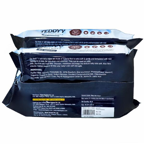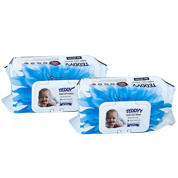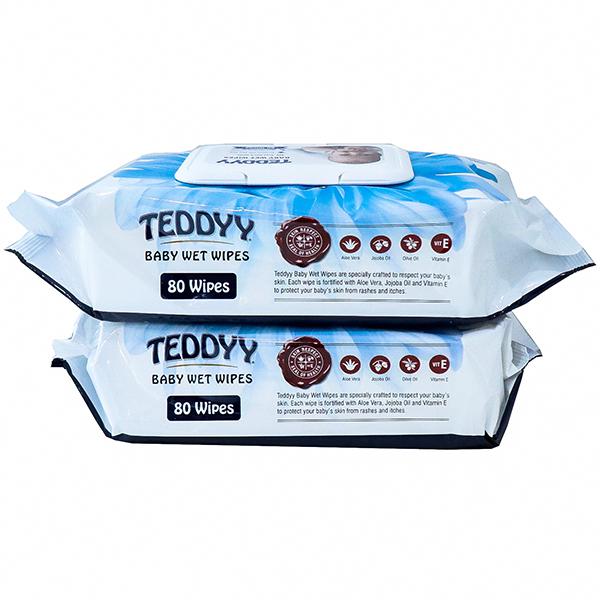 Teddyy Baby Wet Wipes 15 cm x 20 cm (Buy 1 Get 1 Free) Pack Of 2 x 80