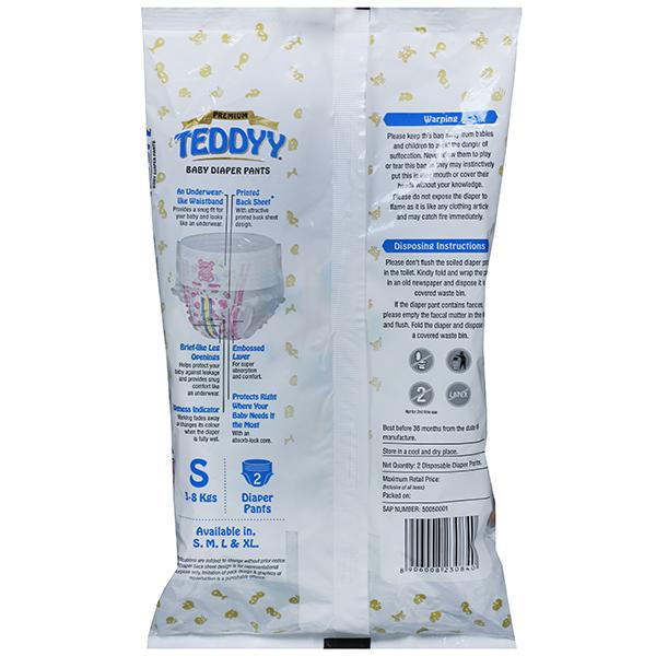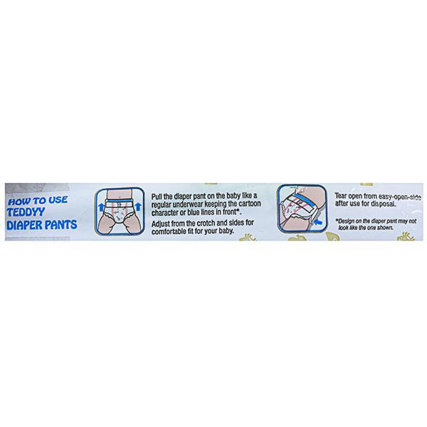 Product Information - Teddyy Diapers Pant makes sure that your little wonder of joy is comfortable and free to move around without trouble. These diapers are made of breathable Cloth-like backsheet with Soft Elastic Acquisition and distribution layer.