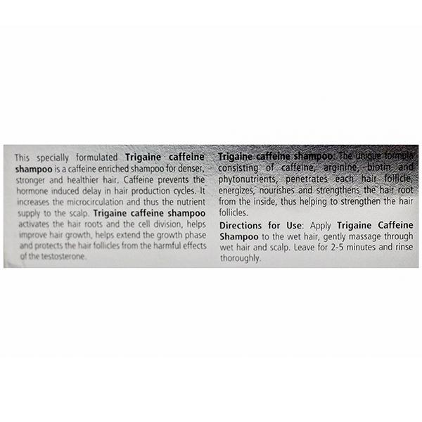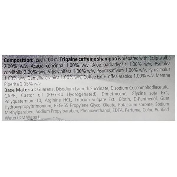 Trigaine Caffeine Shampoo is an ayurvedic proprietary medicine, enriched with Caffeine, Biotin, and Arginine, offers a unique formula that deeply nourishes and strengthens hair roots from within. The caffeine stimulates hair production cycles, increases scalp microcirculation, and helps protect follicles from testosterone's harmful effects, promoting denser, stronger, and healthier hair growth.