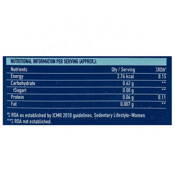 Energy: 2.76 kcal, Carbohydrate: 0.62 g (Sugar): 0.00 g, Protein: 0.06 g, Fat: 0.007 g