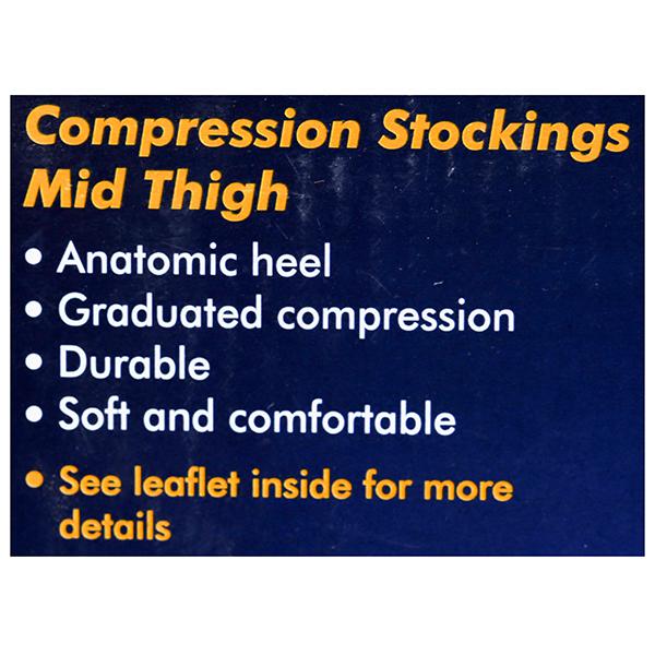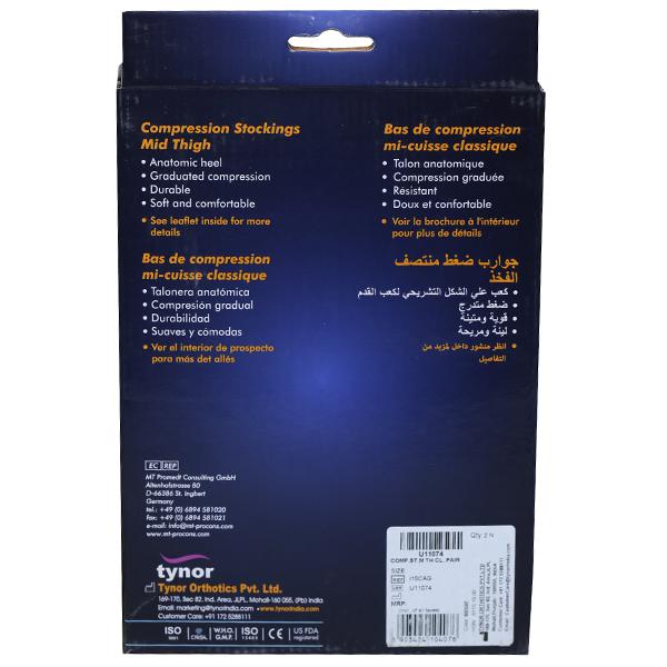 Tynor Mid thigh Compression Stockings provide controlled compression to the legs to squeeze abnormal back flow of blood towards the heart. They provide requisite pressure to the superficial affected veins.