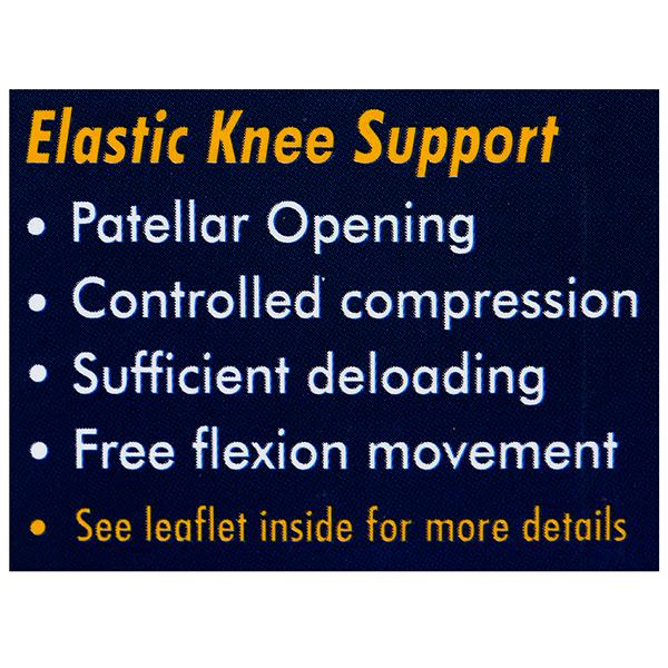 Elastic knee Support is a versatile knee support which offers the advantage of controlled compression around the knee and a rigid lateral immobilization and support of a splint. It allows normal flexion and free movement of the knee joint.