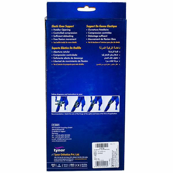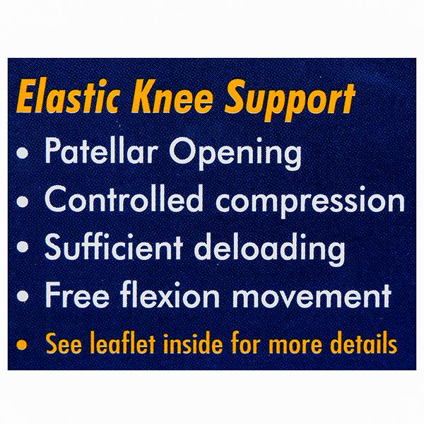 Elastic knee Support is a versatile knee support which offers the advantage of controlled compression around the knee and a rigid lateral immobilization and support of a splint. It allows normal flexion and free movement of the knee joint.