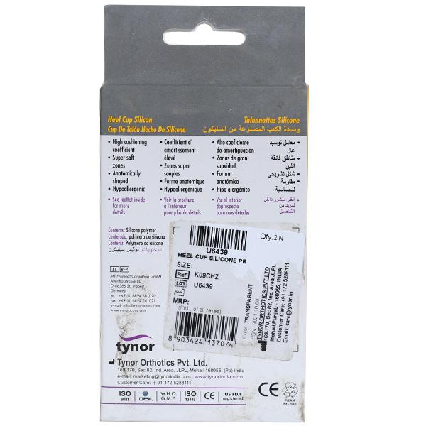 Tynor Heel Cup Silicon is designed to provide soft cushioning to the foot heel. The gel spot at the calcaneus site reduces/distributes pressure and relieves pain.