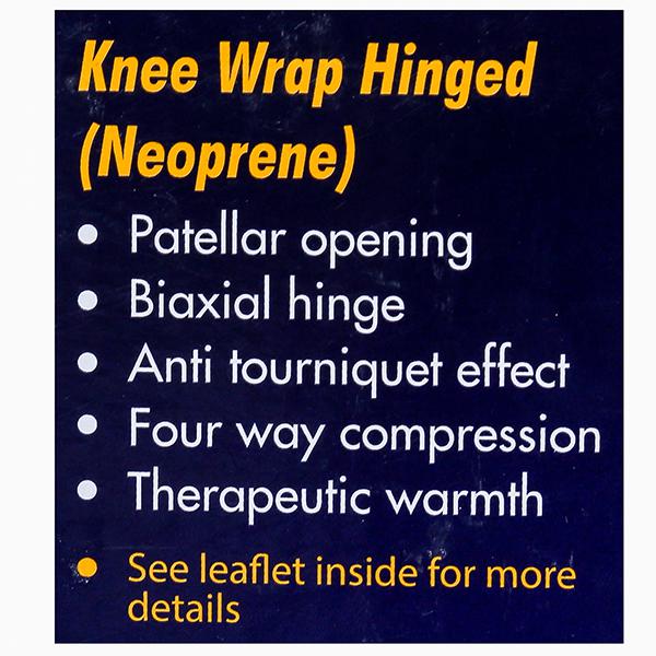 Knee Wrap Hinged (Neoprene) is a versatile knee support which offers the advantage of controlled compression around the knee and the rigid side support of a splint. It allows normal flexion and free movement of the knee joint.