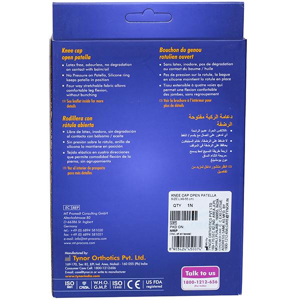 Tynor Open Patella Knee Cap is a compression sleeve to hold and compress knee muscles, to enhance the performance of players by increasing muscle density and blood circulation around the knee during sports, gyming and training. It also provides strong support and protection to ligaments and tendons thereby reduces the chances of wear and tear that can happen from workouts. The anatomical patellar ring holds patella in place during running and other high impact sports.