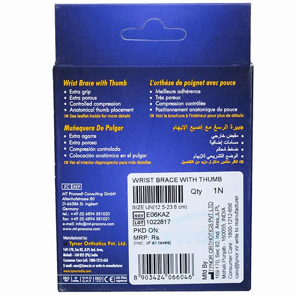 Tynor Wrist Brace With Thumb Universal is designed to support, protect and partially immobilize the wrist and the palm while allowing free and natural movement of the fingers.