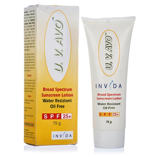 U.V.Avo has SPF 25, ideal for Indian skin. It offers broad spectrum protection against UVA & UVB rays. It has benefits of both physical & chemical sunscreens. U.V. AVO is oil-free and water-resistant and approved by dermatologists for all skin types.