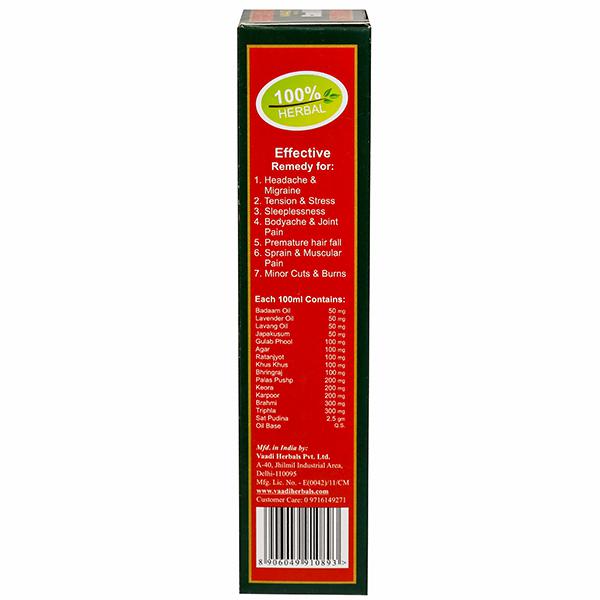 Product Information - An excellent hair oil, this formulation has been specially developed to boost the health of both. When massaged into the scalp, it nourishes it and strengthens the hair follicles; to prevent hair fall. It further helps increase the memory power and relieves migraines.