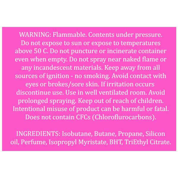 Give it a good hard shake first to make sure all the ingredients are mixed together before you spray it. You should hold the can approximately 15cm from your body or clothes as you spray it.