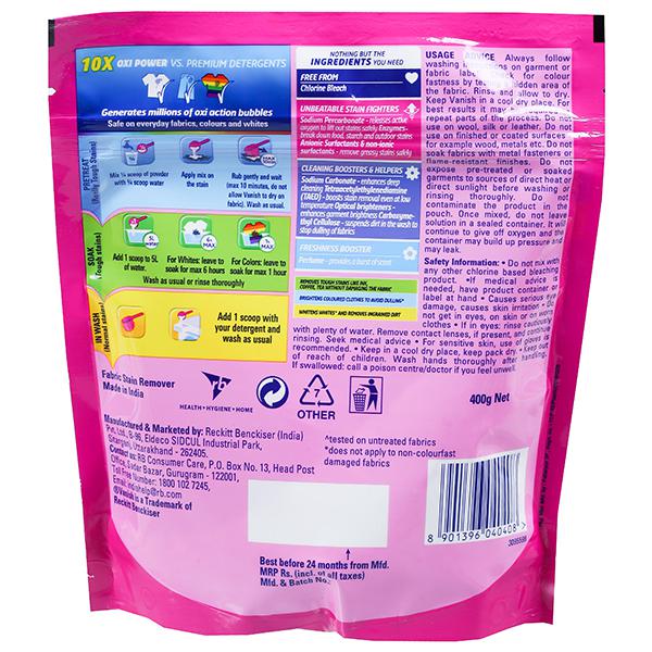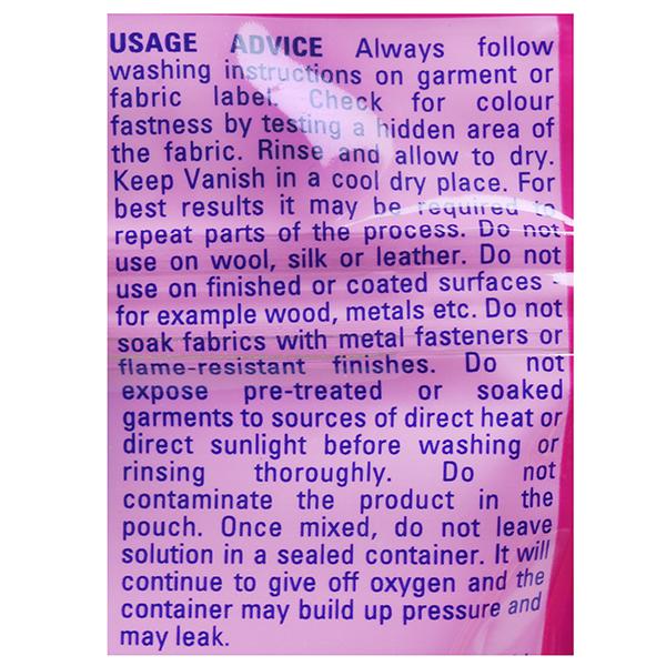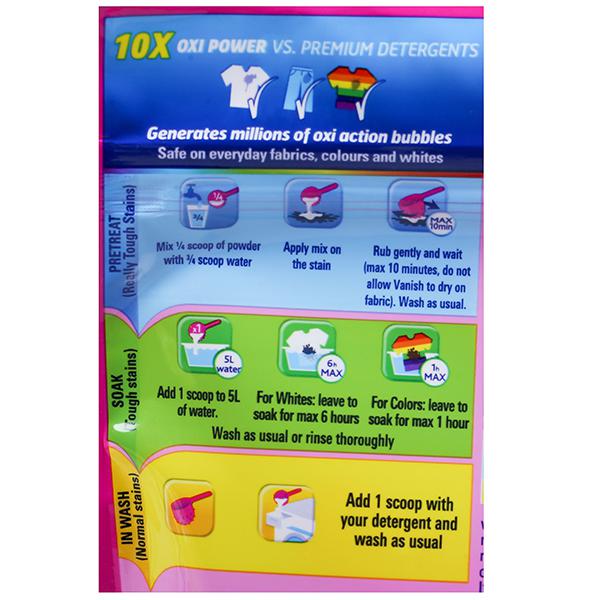 Product Information: Don’t let stain removal bother you anymore. With Vanish Oxi Action Powder you can efficiently get rid of stains from your colored and white clothes.