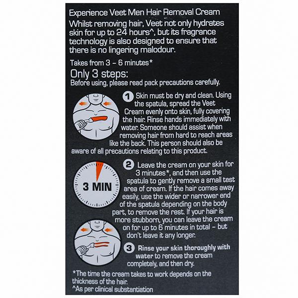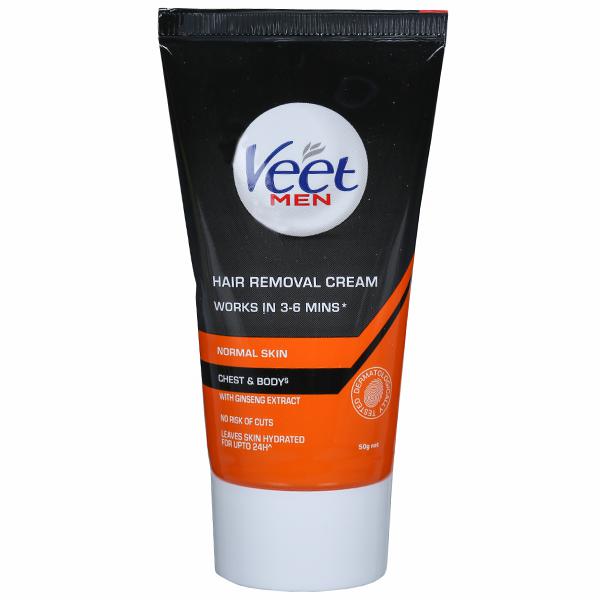 Veet Men Normal Skin Chest & Body Hair Removal Cream is made from ingredients that help in removing hair from the surface of the skin. It can be used to remove hair from the chest, arms, legs and underarms of men.