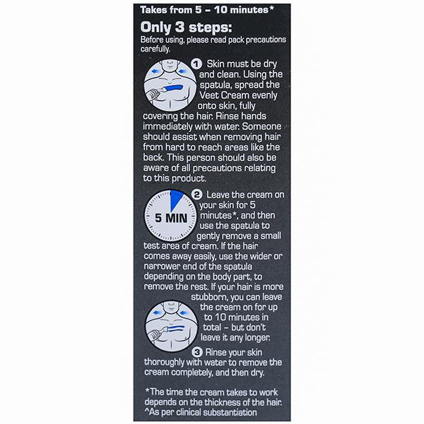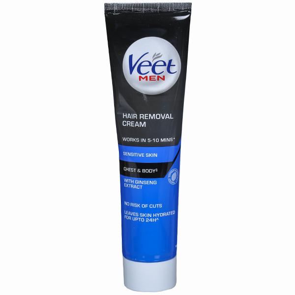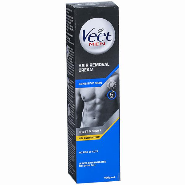 Veet Men Sensitive Skin Chest & Body Hair Removal Cream remove unwanted body hair without the nicks, cuts, and prickly stubble that shaving often leaves behind in just 5 minutes.