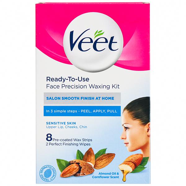 Veet Ready To Use Face Precision Waxing Kit Sensitive Skin is designed to help rid the face of any excess hair.Strips fit into those tricky delicate areas on your face.