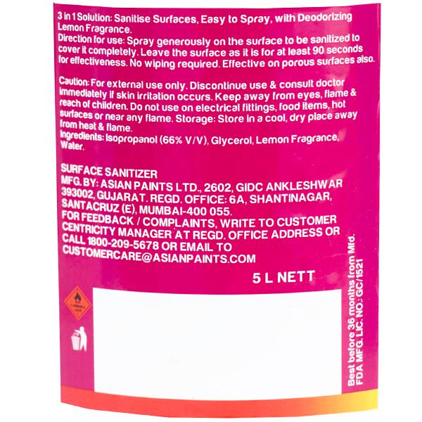 How to Use - Spray generously on the surface to be sanitized to cover it completely. Leave the surface as it is for 90 seconds for effectiveness. No wiping required.