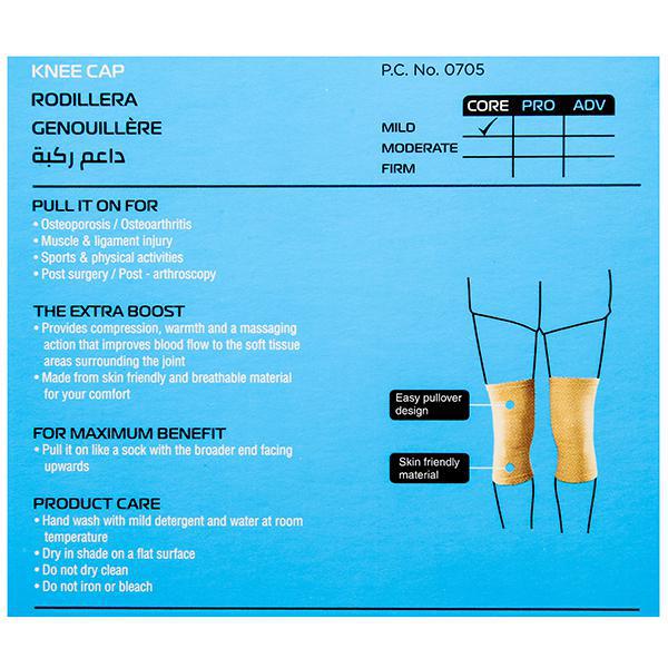 The open patella elasticated knee cap provides compression, and warmth and improves blood flow to the soft tissue areas surrounding the joint. The knee cap consists of blended yarns and cotton which makes the product skin friendly. ...